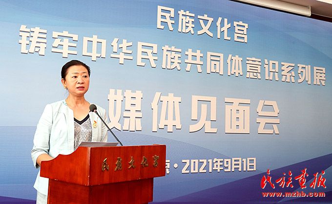 民族文化宮博物館館長陶穎介紹“鑄牢中華民族共同體意識(shí)系列展”相關(guān)情況。