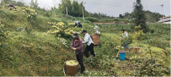 近年來(lái),云南省麻栗坡縣下金廠鄉(xiāng)大壩村委會(huì)根據(jù)自然環(huán)境條件經(jīng)過(guò)不斷考察后引入“湘蕾五號(hào)”品種金銀花進(jìn)行培育養(yǎng)殖,建立大壩村委會(huì)金銀花種植基地,引導(dǎo)農(nóng)戶自己種植,為農(nóng)戶提供技術(shù)支持,帶動(dòng)集體經(jīng)濟(jì)發(fā)展,助推鄉(xiāng)村振興。