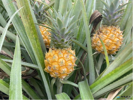 “我現(xiàn)在再砍去一些菠蘿的葉子,防止采收時(shí)割傷,同時(shí)讓太陽曬到菠蘿,讓菠蘿更好吃。”菠蘿地里,金黃的菠蘿隱藏在綠色的“皇冠”和葉片之下,馬停紅正在修剪菠蘿葉。