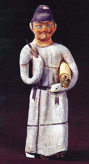 阿斯塔那墓出土的彩繪泥塑文吏俑。