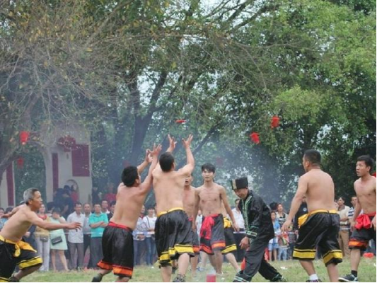壯族花朝節(jié),是紀(jì)念百花仙子的壯族傳統(tǒng)民俗文化節(jié)日,流行于崇左市寧明、龍州等地,每年農(nóng)歷二月初二舉行。節(jié)日里,男女青年從四面八方匯集在長有高大木棉樹的地方對唱山歌,在真摯的歌聲中贈花定情,拋擲繡球和互贈禮物。日落時分,人們按照傳統(tǒng)習(xí)俗,從四周把繡球向木棉樹高枝拋去,掛到木棉樹上,以求百花仙子保佑愛情永結(jié)。