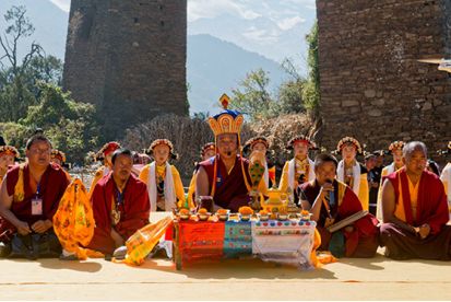 在成人禮上,活佛主持誦經(jīng)祈福儀式