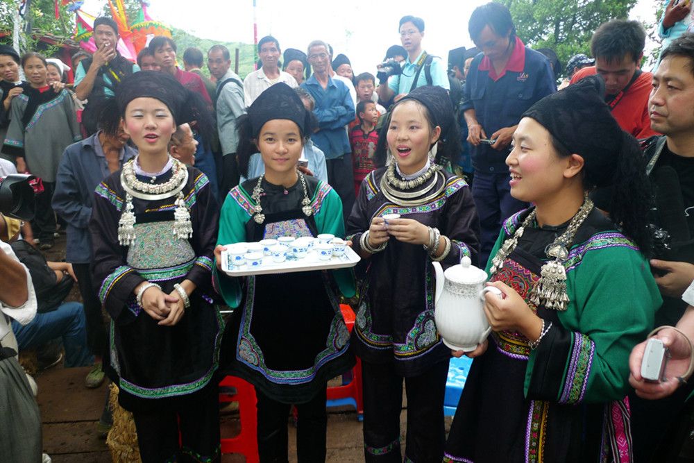 人們傳說只有醉倒了"霞神",它才能永遠(yuǎn)留在這方,才能使這里風(fēng)調(diào)雨順。當(dāng)水書先生念了最后的咒詞,祭典才在鼓樂聲和歡呼聲中結(jié)束。最后,各族系將祭肉一并聚攏,聚餐慶祝。天黑之后,人們秘密地將"霞神"收藏起來,至此,"敬霞"活動全部結(jié)束。