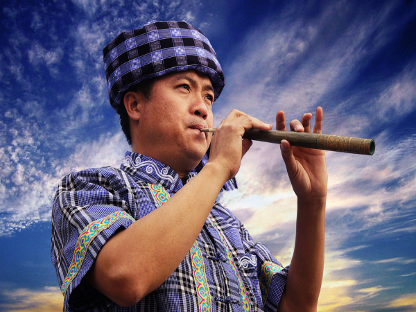 布依族民間樂器包括管樂、弦樂和打擊樂三種。管樂主要有嗩吶、簫、笛,以及布依族民間獨(dú)有的勒尤、勒朗、勒拱、姊妹簫等。嗩吶是布依族民間最常見也是最受歡迎的樂器;笛、簫等管樂主要用于“八音坐唱”(“八音坐唱”又叫“布依八音”,演出隊(duì)伍8—14人不等,所唱生、旦、凈、末、丑諸戲曲,不化妝,因用牛腿骨、竹筒琴、直簫、月琴、三弦、芒鑼、葫蘆、短笛8種樂器合奏而得名。),與其他樂器一起合奏;姊妹簫是一種簧管樂器;勒尤和勒朗也是布依族使用的雙管類樂器;勒拱又稱“筆管”,是一種單簧吹管樂器。弦樂樂器主要有二胡和月琴。二胡最為普遍,可以獨(dú)奏,演奏場(chǎng)合不定,其演奏的多是布依族民歌調(diào);月琴也是布依族青年喜愛的樂器之一,但不十分普遍,很少用于獨(dú)奏,主要作為“八音”樂隊(duì)的合奏樂器。打擊樂主要有銅鼓、牛皮鼓、鑼(包括大鑼和小鑼)、釵、鐃鈸等。銅鼓是布依族一種古老的打擊樂器,通體用銅鑄成,呈圓墩形;牛皮鼓、鑼、釵既可用于喜慶的場(chǎng)合,也可用于莊嚴(yán)肅穆的儀式,沒有固定的曲調(diào),主要作為嗩吶的配樂樂器。