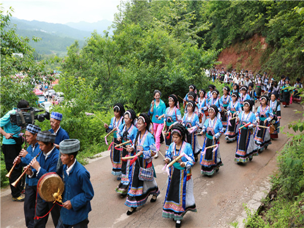 六嗩吶聲聲,鑼鼓齊鳴,各地布依同胞趕來參加六月六盛會(huì)。引自六盤水市紀(jì)委監(jiān)察局網(wǎng)站