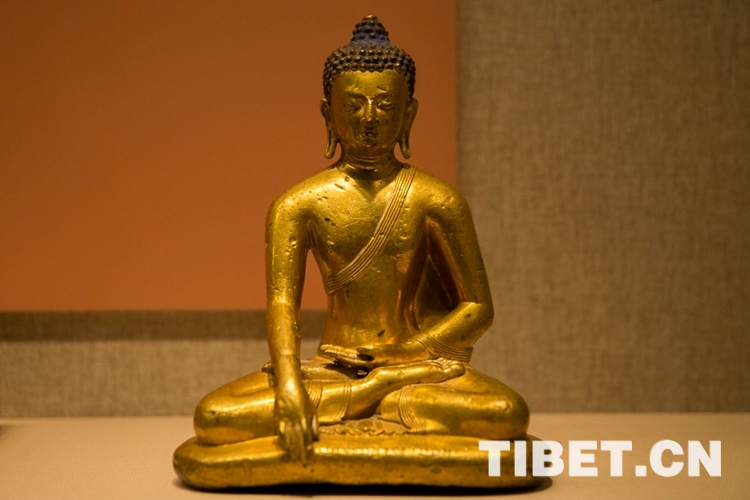 圖為正統(tǒng)款銅鎏金釋迦牟尼像,該像具有典型的中原漢地風格。攝影:姚浩然