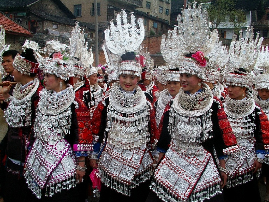 貴州施洞苗族銀飾鍛造歷史悠久,銀飾工藝精湛,工藝品主要有銀角、銀冠、銀花、銀簪、銀梳、銀插針、銀耳柱、銀耳墜、銀項圈、手鐲,花片和銀鈴等等。施洞的銀飾全部用純銀制作,純度達97%以上,穿戴起來顯得十分亮麗和貴重。施洞的盛裝在世上可堪稱一絕,銀飾現(xiàn)已成為裝飾品、藝術品、美的標志、富有的象征。施洞鎮(zhèn)專門從事銀飾制作的有200余戶,所生產(chǎn)的銀飾品暢銷國內外,成為主要的經(jīng)濟來源。