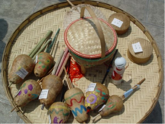 2010年上海世博會活動周期間,一臺名為《記憶云南》的18項非物質(zhì)文化遺產(chǎn)展示成為最吸引眼球的亮點之一?;顒蝇F(xiàn)場,18名云南非物質(zhì)文化遺產(chǎn)傳承人和民間藝人展示白族布扎、納西族東巴畫、傣族剪紙、傣族竹編、佤族織錦技藝等制作技藝。其間展示的傣族竹編技藝在民族文化風(fēng)情濃郁,文化底蘊深厚的耿馬傣族佤族自治縣廣為流傳。俗話說傣族“無竹不成家”,自古以來,傣族就和竹子結(jié)下了不解之緣。傣家人生活地區(qū)大多竹資源豐富,他們在飲食上喜歡吃鮮竹筍和用竹筍腌制的酸筍,各種生活用具也多用竹制作而成。在翠竹掩映,綠色蔥籠的耿馬傣族村寨,傣家人尤其愛竹、用竹,并擅長竹編技藝,他們擅用竹子為材料搭橋、蓋屋,住的是竹樓,用的是各式自編的竹器,大至籬、墻、門、毯笆、竹筏、床、桌、柜、席,小至飯盒、帽、扁擔(dān)、簍、提籮、甑子、供桌、鼓凳等,無一不是用竹編織而成。有的竹編還鑲嵌五彩圖案,富麗堂皇,專供佛寺祭掃之用,而各種精美的竹編小物品則是男女青年表達愛情的信物。傣族竹編歷史悠久,世代相傳的竹編技藝,具有鮮明的民族特色。耿馬傣族竹編工藝精細,造型樸實大方,圖案變化美觀,制品種類繁多,是優(yōu)良的實用工藝,其中以笆蘿、飯盒、檳榔盒、提籮、供桌的竹器編織技術(shù)最有代表性。笆蘿是傣語,指的是一種掛在腰間的竹簍。笆蘿編織精巧,美觀適用,既是生產(chǎn)、生活用具,又是精致的裝飾品。傣族婦女身著輕盈飄逸民族服裝,腰系一只笆蘿,走動時笆蘿隨身輕松搖擺,顯得十分樸實、精干、健美、俊俏。更為珍愛之處在于,笆蘿是傣族青年男女間愛情的傳遞物。傣族男子從小學(xué)習(xí)竹編,人人都有一手精湛的竹編技藝,青年男子總是精心編織一只笆蘿送給自己心愛的姑娘,換回一個姑娘回贈的親手織繡的筒帕。所以編織笆蘿和織繡筒帕是傣族青年“編織愛情的技藝”。如果一個小伙子不會竹編,那么他就同姑娘不會織繡一樣,說明他沒有一雙勤勞靈巧的雙手,很難找到心愛的伴侶。耿馬傣族民間竹編漆器工藝歷史悠久,世代傳承其竹編漆器主要有貢桌和提籮,傣語稱“浪擺”和“撒毫”。 “撒毫”和“浪擺”是傣族群眾從事佛教活動時的必需用品,家家戶戶都備有一套。每到潑水節(jié)或開門節(jié)、關(guān)門節(jié)時,傣家老人用“撒毫”裝各種禮佛用品,子女們則用“浪擺”和“撒毫”給父母送齋飯。平時則置于高處,不能亂放東西。僅“撒毫”的制作流程,便可分為選竹、破篾、編制、裝飾等10道工序,裝飾工藝獨特精美,集實用性和觀賞性于一體。由于傣族人民篤信佛教,竹器漆制品較多裝飾荷花、魚、蝴蝶等圖案,寓意祈求佛祖保佑,賜福予人風(fēng)調(diào)雨順、吉慶有余。傣家竹編,既為人們生產(chǎn)生活所必需,也給人美的享受,真是民族工藝百花園的一朵奇葩。