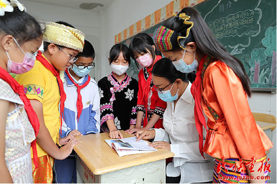 云南省臨滄市滄源佤族自治縣國門小學(xué)是一所位于中緬邊境線上的縣直小學(xué),創(chuàng)辦于1937年2月,曾四易校址,六更校名。學(xué)校現(xiàn)有38個(gè)教學(xué)班,在校學(xué)生1668人,其中少數(shù)民族學(xué)生1172人。在開展民族團(tuán)結(jié)進(jìn)步教育工作中,滄源佤族自治縣國門小學(xué)以社會(huì)主義核心價(jià)值觀為引領(lǐng),以德育工作為抓手,充分發(fā)揮少先隊(duì)組織的作用,形成了以學(xué)校為龍頭、家庭為基礎(chǔ)、社會(huì)為平臺(tái)的民族團(tuán)結(jié)育人團(tuán)隊(duì)。