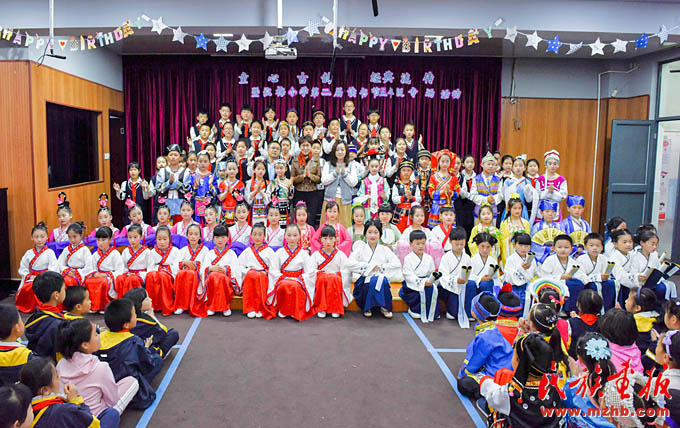 同一天下午,一場精彩的T臺(tái)秀在上海市閔行區(qū)梅隴鎮(zhèn)弘梅小學(xué)上演。小學(xué)生們身著民族服裝亮相,動(dòng)感的音樂、精彩的表演,將“民族團(tuán)結(jié)一家親”的理念演繹得生動(dòng)活潑。學(xué)校布置的民族文化墻上,展示了我國56個(gè)民族的風(fēng)土人情,營造了多姿多彩的民族文化氛圍,讓民族特色文化陪伴在學(xué)生身邊。