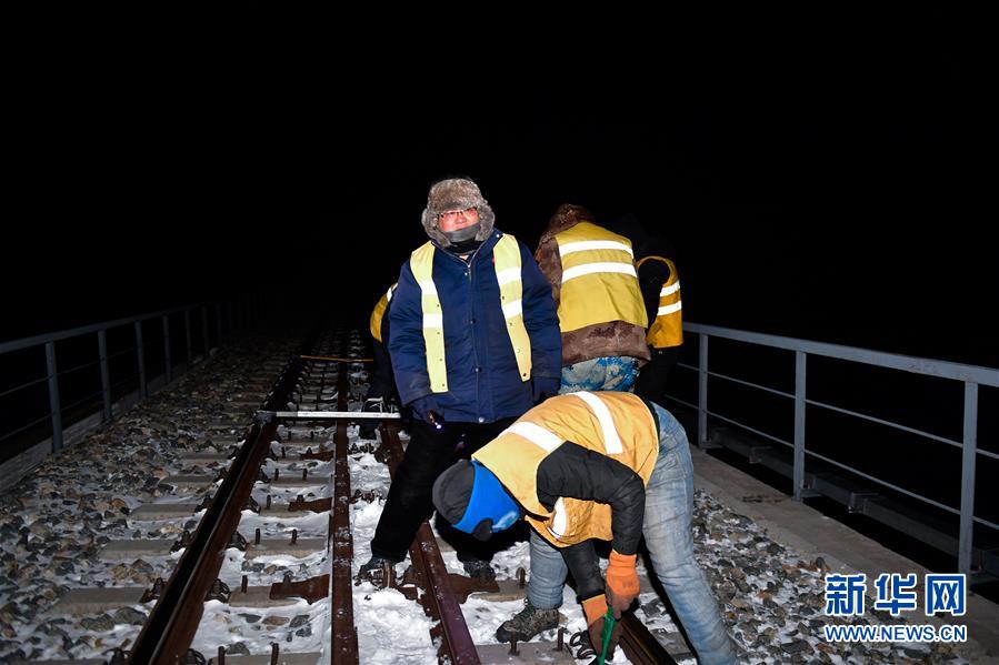 1月11日,中國鐵路青藏集團有限公司格爾木工務(wù)段望昆線路車間的于本蕃(右一)和