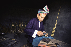楊枝光在制作蘆笙