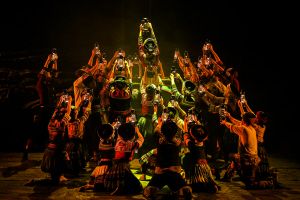 “《幸?;ㄉ健肥俏鳟牼裨谖枧_(tái)上的藝術(shù)表現(xiàn)和衍生。這個(gè)劇目展現(xiàn)了人類(lèi)在面對(duì)困境時(shí)集體智慧的力量,闡釋了中國(guó)優(yōu)秀傳統(tǒng)文化的當(dāng)代價(jià)值。希望觀眾通過(guò)這個(gè)劇目,能夠真正領(lǐng)悟‘幸福是奮斗出來(lái)的’這句話(huà)的深刻內(nèi)涵。”文山州民族文化工作團(tuán)團(tuán)長(zhǎng)王成懷說(shuō)。