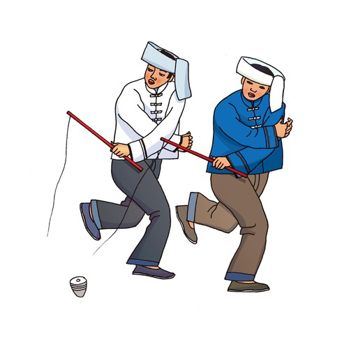 維吾爾族(獨輪車):維吾爾族有7214431人,主要聚居在新疆維吾爾族自治區(qū)。維吾爾族體育項目主要有摔跤、走繩(高架繩,維吾爾語稱為達瓦孜)、打尕尕 (打木棒)、較量、滑冰等?!暗鹧颉北荣愂蔷S吾爾族人民酷愛的一項傳統(tǒng)民間體育運動。