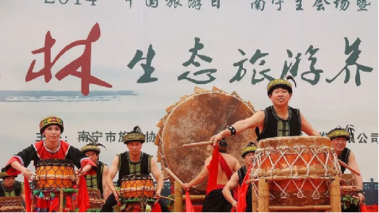 上林縣瑤族鼓樂,原汁原味,鼓點(diǎn)雖然簡單,卻具有原生態(tài)的民族特色。后經(jīng)藍(lán)卓寶、藍(lán)連榮、盧成、盧飛燕等學(xué)者挖掘整理,2010年開始籌備瑤鼓樂,2011將具有上林瑤族鼓樂特色的“瑤山鼓”搬上舞臺(tái)。