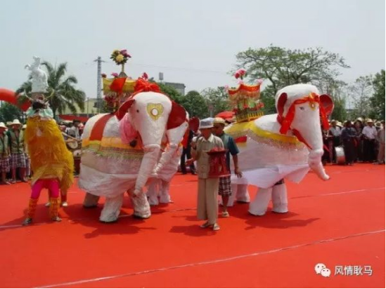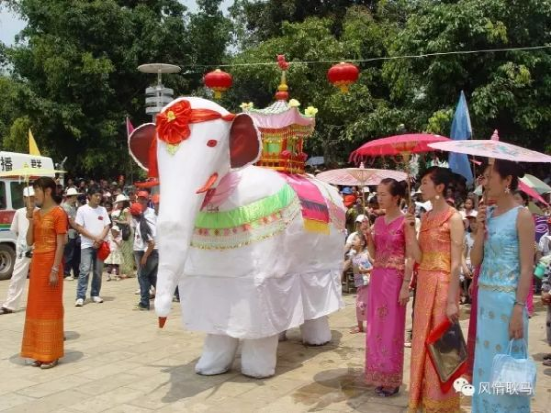 白象舞是云南耿馬縣傣族群眾盛行跳的一種民間舞蹈,也是耿馬特有的舞種,白象舞屬雙人擬獸舞,十分講究舞者之間的默契配合。舞蹈步伐穩(wěn)健、有力。舞蹈基本動(dòng)作有:“原蹈步”、“前后跳”、“左右跳”、“鼻走”等。經(jīng)過民間藝人長期不斷改進(jìn),而今,耿馬白象舞已經(jīng)形成了一整套基本舞步,表演者借助白象道具模仿大象動(dòng)作,把笨拙的大象表現(xiàn)得活潑可愛、步伐穩(wěn)健、韻律十足。