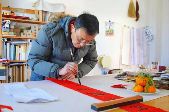 張旭東的童年,是在祖父母的耳提面命中度過的,他跟隨老人習(xí)書繪畫,學(xué)禮明俗。到了弱冠之年,他逐一拜訪古鎮(zhèn)中尚在的民國時期出生的老輩文人,向他們請教劍川白族傳統(tǒng)民俗,并做了系統(tǒng)梳理,這也為他后來繪制年畫、撰寫春聯(lián)打下扎實的理論基礎(chǔ)。