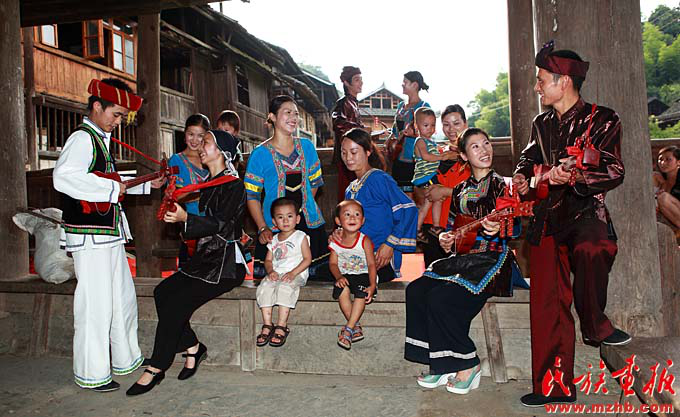 苗族姑娘韋夢迪說:“現(xiàn)在人們生活水平提高了,活動的內(nèi)容也越來越豐富?;顒蝇F(xiàn)場的姑娘若對小伙子有好感,跟過去情況也不一樣了,只要人好就行。”林洞村培科屯老人何桂姣也有一樣的感受:“記得以前小的時候‘打同年’就是吹蘆笙、跳踩堂舞、對歌,現(xiàn)在‘打同年’活動越來越豐富,還增加了籃球賽、拔河比賽、聯(lián)歡晚會等很多節(jié)目?!泵磕旰倩丶叶家獏⒓印按蛲辍钡膹V西大學(xué)學(xué)生潘金鑫來自融水縣懷寶鎮(zhèn),他說:“通過開展吹蘆笙、踩堂舞、文藝表演等傳統(tǒng)文化活動,加深了大苗山黨群干群之間、村寨各族同胞之間的情誼,增進(jìn)了民族團(tuán)結(jié)。我自己也特別能感覺到家鄉(xiāng)的發(fā)展變化,這讓我很自豪。”