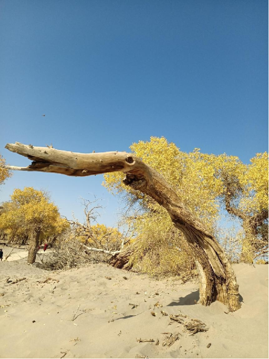 胡楊,又稱胡桐、英雄樹、異葉胡楊、異葉楊、水桐、三葉樹,是生長在沙漠中的樹種,它耐寒、耐旱、耐鹽堿、抗風(fēng)沙,有很強(qiáng)的生命力。