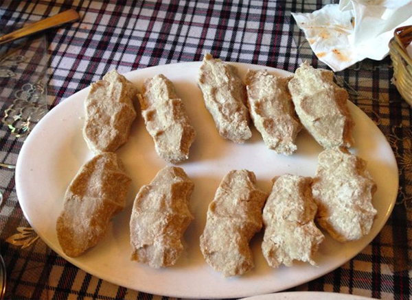 糌粑是藏族牧民傳統(tǒng)主食之一?!棒佤巍笔浅疵娴牟卣Z譯音,它是藏族人民天天必吃的主食,在藏族同胞家作客,主人一定會給你雙手端來噴香的奶茶和青稞炒面,金黃的酥油和奶黃的“曲拉”(干酪素)、糖疊疊層層擺滿桌。糌粑是將青稞洗凈、晾干、炒熟后磨成的面粉,食用時用少量的酥油茶、奶渣、糖等攪拌均勻,用手捏成團即可。它不僅便于食用,營養(yǎng)豐富、熱量高,很適合充饑御寒,還便于攜帶和儲藏。