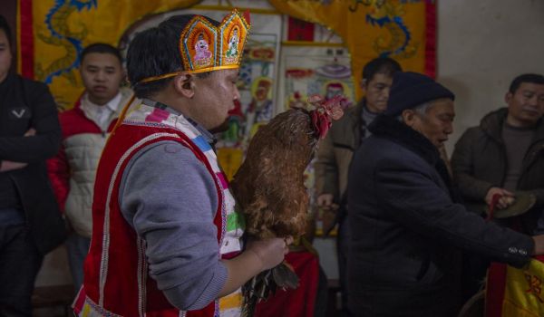 一般情況了愿主人家要親自到掌壇師家中,迎接壇班。出發(fā)之前,掌壇師需要燒紙、敬香、吹金牛角向...