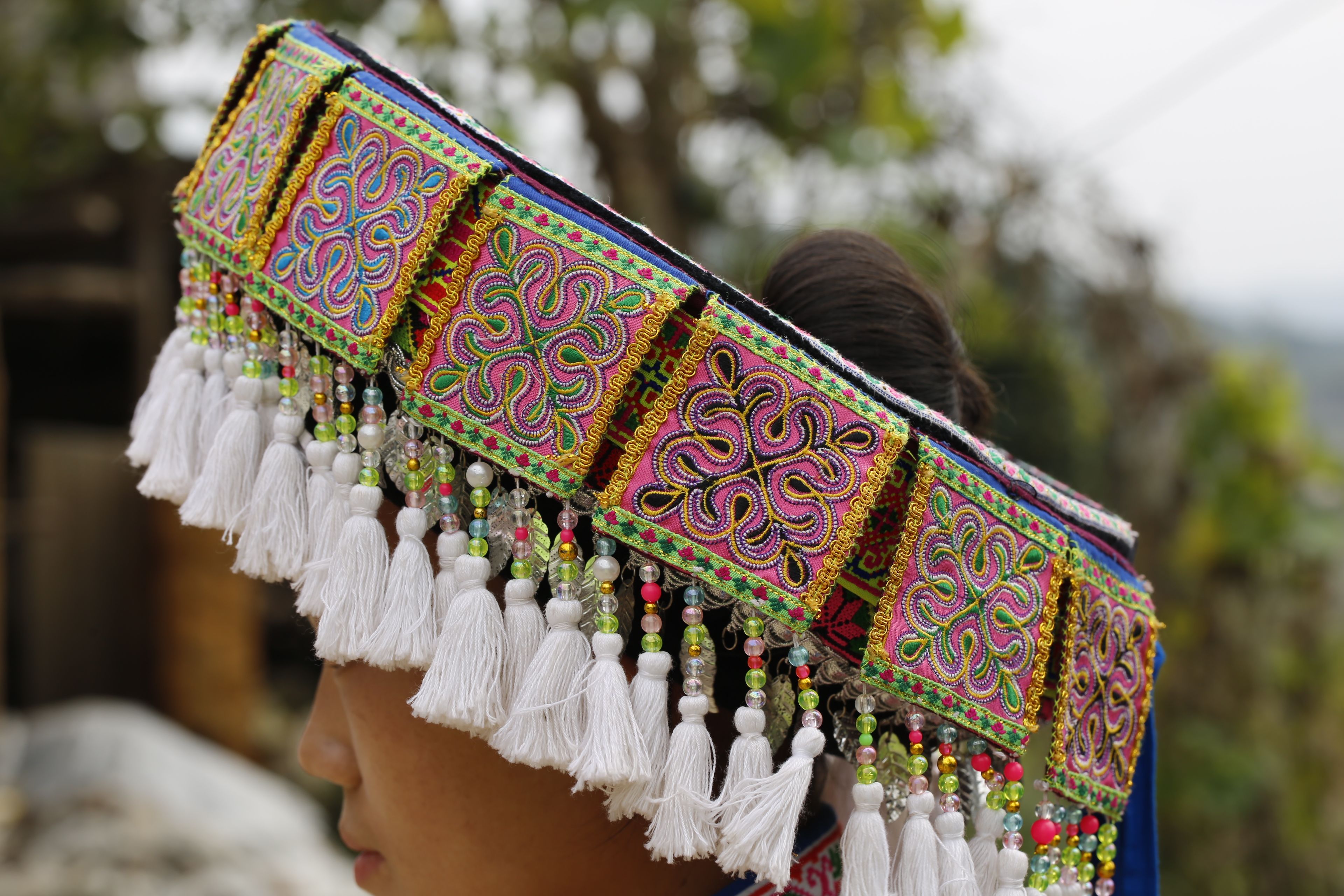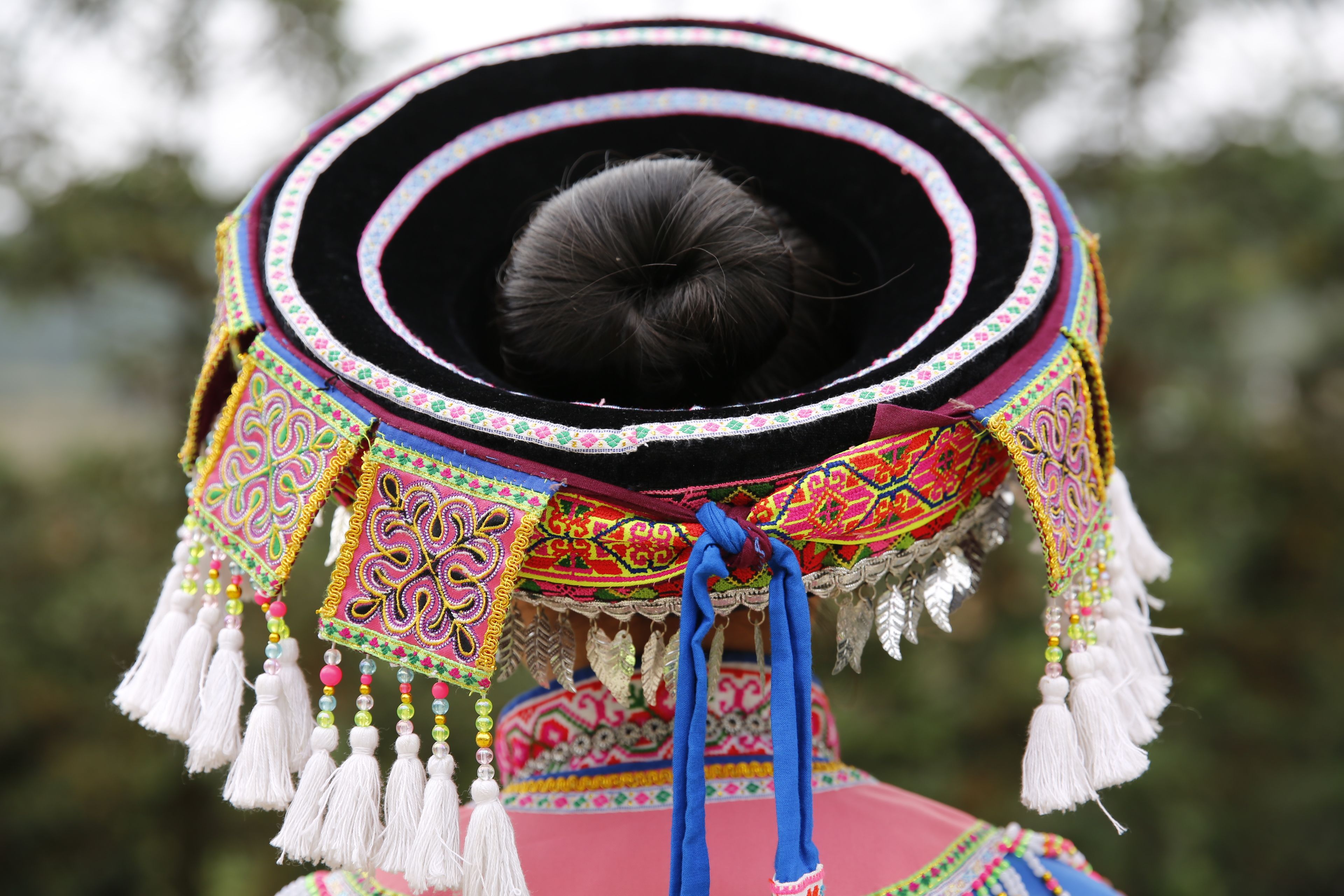 圖片說明:貴州貴陽苗族女子服飾花帽