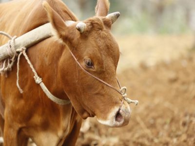貴州貴陽(yáng)苗族農(nóng)作物種植-牛耕田